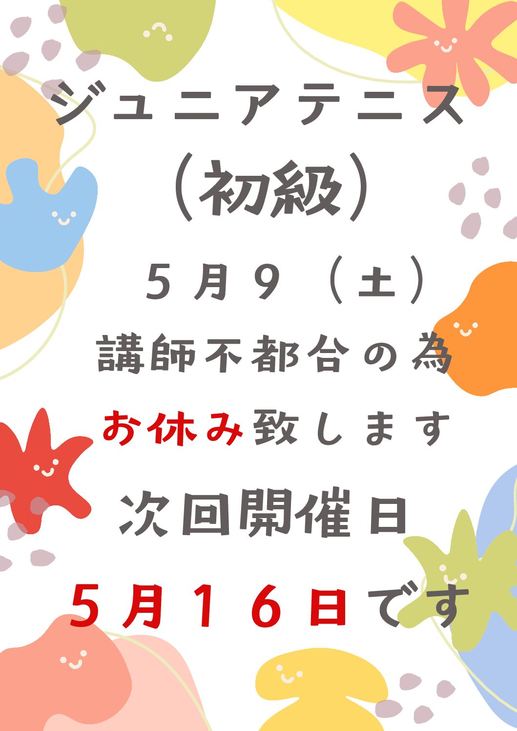 2026年4月27日 テニス教室休講のお知らせ 2026年4月10日 ソフトバレーボール大会お知らせ 2026年4月10日 休講のお知らせ 2026年4月5日 大人硬式テニス休講のお知らせ 2026年4月4日 2026年4月4日ジュニアテニス(初級)教室休講のお知らせ 2026年4月1日 休講のおしらせ 一覧を見る