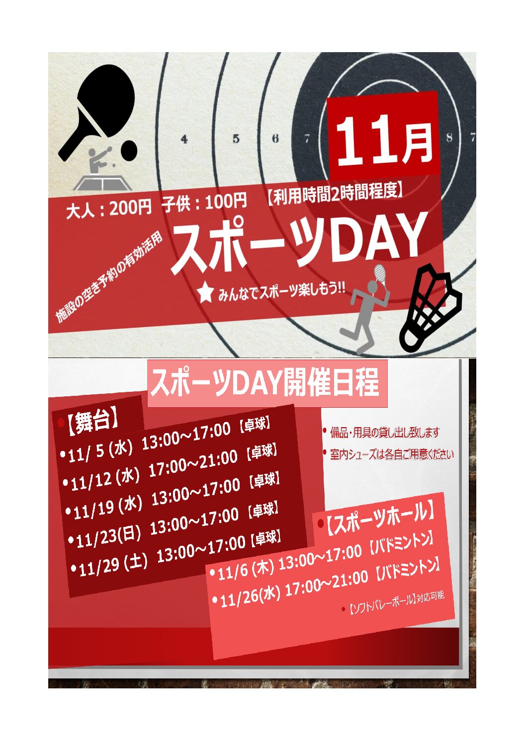 10月の【スポーツDAY】 暑さに負けずスポーツを楽しみましょう! …